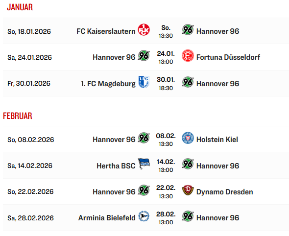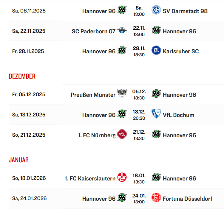 SPIELPLAN HANNOVER 96 2.BUNDESLIGA SAISON 2025/2026