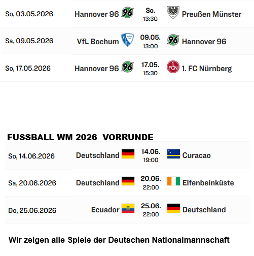 DIE NÄCHSTEN 96 SPIELE LIVE bei uns in der Nordkurve: